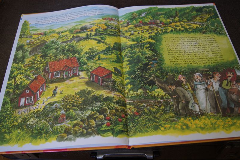 Wir wollten uns etwas auf den Film einstimmen. Doch mit jeder Seite mehr, die wir dabei umgeblättert haben, wurden wir skeptischer. Kann denn eine Verfilmung dieser, von Sven Nordqvist erschaffenen, Wunderwelt überhaupt gerecht werden? Bei den Zeichentrickfilmen ist es den Machern damals gelungen, aber die konnten ja auch komplett auf die detailverliebten Illustrationen von Nordqvist aufbauen. Für eine Real- und Animationsverfilmung muss diese besondere Bildsprache aber mittels Filmkulissen und Effekten für die Leinwand übersetzen werden. Wie das gelingen sollte, daran hatten wir unsere Zweifel. Auch wenn ja in der Filmbranche heutzutage alles möglich scheint – aber die Geschichten von dem alten Pettersson und seinem aufgeweckten Kater Findus stellen unserer Meinung nach eine besondere Herausforderung dar.Schon auf der ersten Seite des ersten Pettersson und Findus Buches Eine Geburtstagstorte für die Katze (1984) kann man gut erkennen, was genau wir mit dieser Herausforderung meinen. Nordqvist schafft mit seinen Illustrationen eine Welt, in der kleine wie auch große LeseEntdecker immer wieder etwas Neues entdecken können. Er zeichnet und beschreibt die Landschaft sowie die Charaktere mit unheimlich viel Liebe zum Detail und Phantasie, sodass man sich in dieser Welt ganz verlieren kann. Dann ist man auf einmal auf Petterssons Hof – sieht das kleine rote Haus vor sich, den Tischlerschuppen, den Hühnerstall und das Plumpsklo. Man spaziert über Wiesen und durch Wälder, begegnet verschiedenen Tieren und entdeckt so manche Absurdität. Und wenn man noch etwas genauer hinschaut, dann entdeckt man in dieser Wunderwelt noch ein weiteres kleines Wunderland. Das Land der Mucklas.